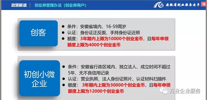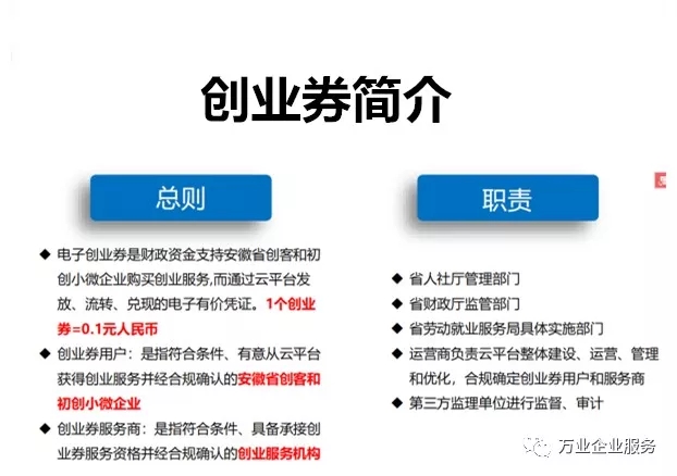 為貫徹落實黨的十九大關(guān)于鼓勵創(chuàng)業(yè)帶動就業(yè)的精神,深入實施安徽省五大發(fā)展行動計劃,提升創(chuàng)業(yè)和初創(chuàng)企業(yè)在共建共享發(fā)展中有更多獲得感,降低創(chuàng)業(yè)成本,安徽省人社廳與財政廳通過發(fā)行電子創(chuàng)業(yè)劵的形式為創(chuàng)業(yè)者和初創(chuàng)企業(yè)提供補(bǔ)貼。全省16個地市30多家服務(wù)商滿足你創(chuàng)業(yè)期間的所有需求。
