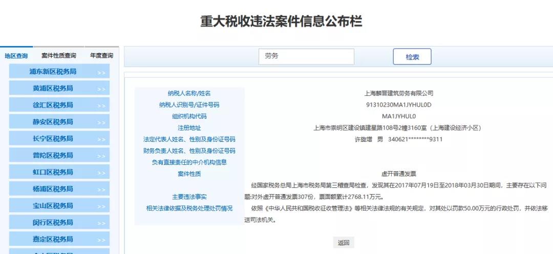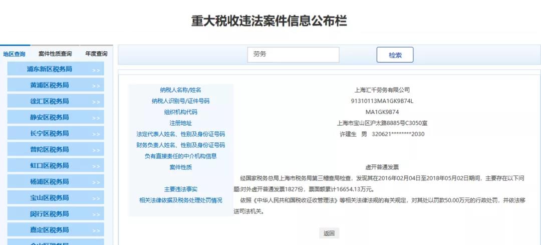 最近魔都上海傳來大消息,多家勞務(wù)公司和人力公司被查,清一色的罰款+移送司法機(jī)關(guān),不難看出勞務(wù)公司一直是稽查重點(diǎn),也是虛開的重災(zāi)區(qū),一查一個(gè)準(zhǔn)!